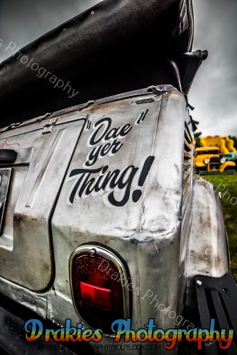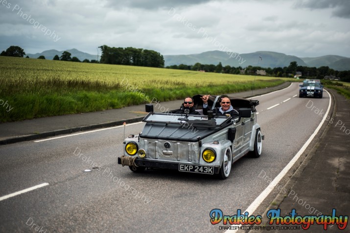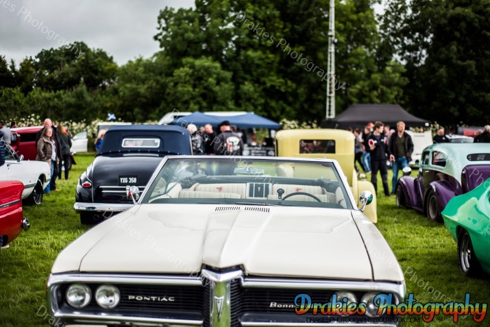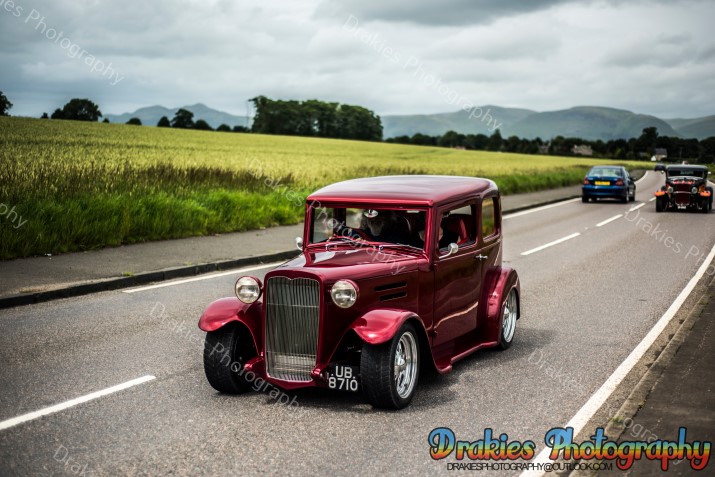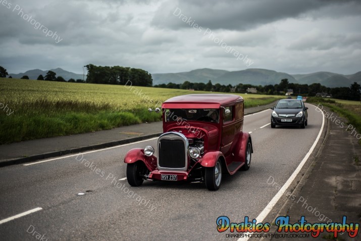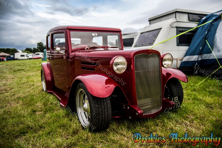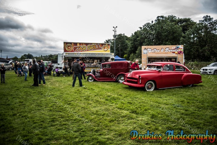 In Scotland they are known for many things, haggis, drinking most mortals under the table, kilts but one thing they are not really well known for is holding American Car and Hot Rod events with only one drag strip with a cliff edge and the sea to look at if you overstep yourself it’s not really the sort of track you will find Supercharged Outlaws doing points round unless it’s for the best 60ft, well the American Car & Hot Rod scene is well and truly alive as well as is the drag racing, it’s always a hot topic of why the Scottish will drive 9 – 10 hours to get to a show or drag meet down south but it’s very rare you will see a group of people coming up to an event from the M25 area to Scotland. The Phantoms Hot Rod Hootenanny may have just proved some of that wrong with people coming from the Orkney Island and a couple that have been on a touring holiday towing a caravan with a beautiful hot rod totaling 809miles finishing off at the Phantoms weekend with still 400miles to drive home after the event. The Phantoms hold the event at Stirling Rugby Club where as normal in Scotland the weather on Friday at the start of the event was wet, not as wet as you walk outside and get more soaked than a nappy being dumped in a river but just enough to keep a few people away if they looked out the window that morning you may think about going back to bed but even with the wet stuff paying a visit it was still not enough to dampen everyone’s spirits, with a hot rod related quiz on the Friday night and an impressive Elvis impersonator on the Saturday night with a cruise out to Bo’ness Car Museum Saturday afternoon how could you top that? Well, how about a free burger Friday and Saturday night plus if you wished you could pop in the marquee on Saturday night after 7pm and crab a glass of wine and some cheese & don’t forget the crackers! Sunday started off with the gates opening to the public at 12 for the show and shine but so many turned up the gates were opened as the show field was still filling up about 10:30 even the sun popped in for a few hours to have a look at the band that was playing away to everyone walking around the show field with the closing of the day with prize giving in the afternoon and people slowly drifted off home it was the end of a fantastic weekend. If you have never been it is well worth the effort to take a drive up and spend a weekend with friends & making new ones with views of rolling hills and Wallis Monument towering over the camp all weekend would we say it’s worth it, without a doubt we would.