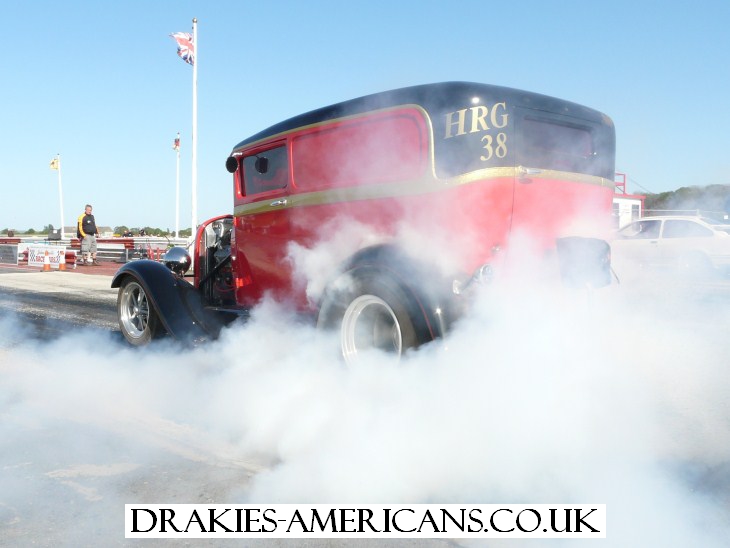 Talk about a Burnout! try coughing this up for a week! I did! Dave McCallan's 29' Model A Delivery putting half his rear tyre's on the burnout box